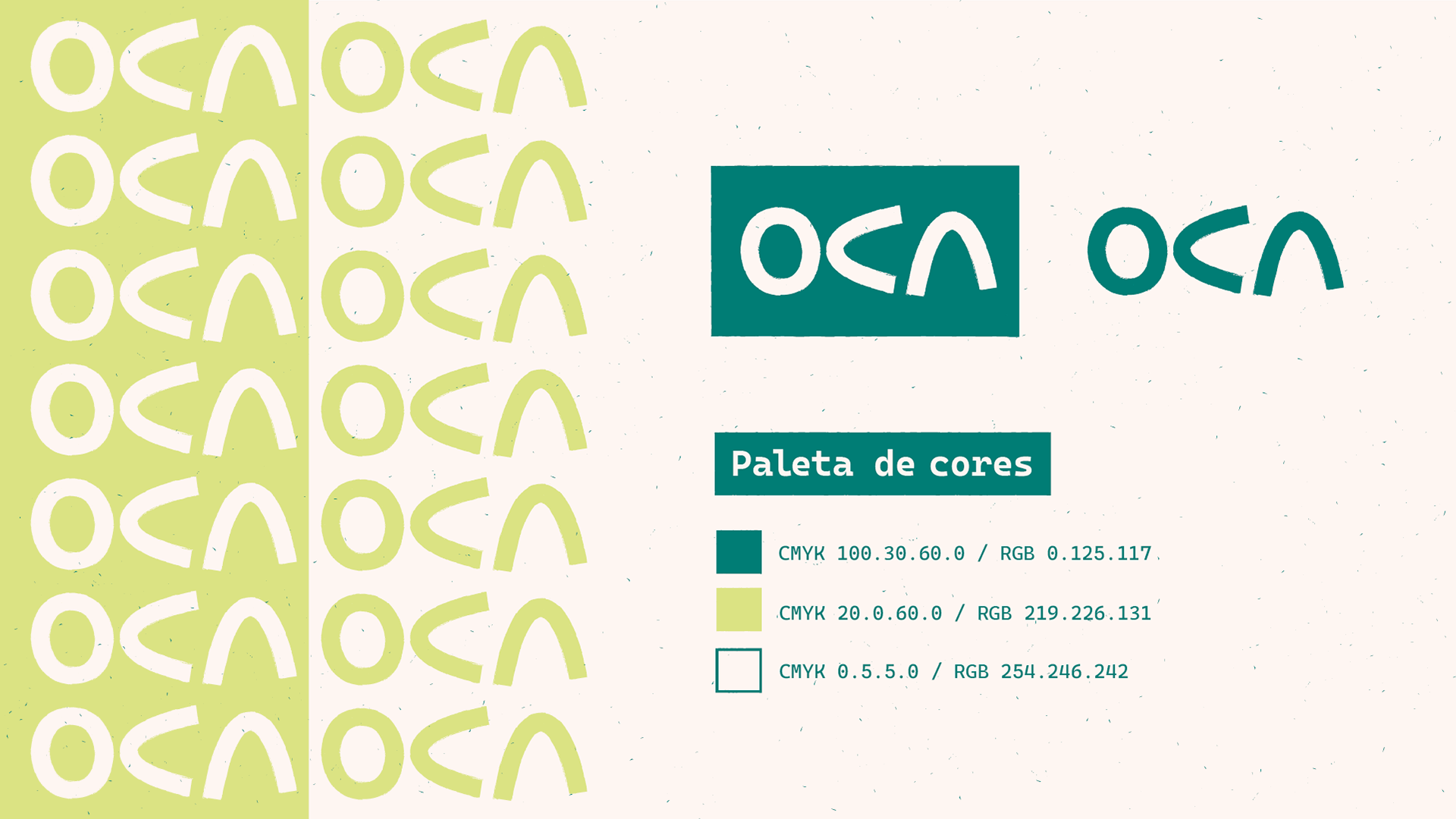 A OCA é o novo bar da mata. Oferece uma noite bastante culltural, com música, culinária particular e especiarias. O objetivo da identidade foi evidenciar a origem indigena do nome. As letras desenhadas a mão, fazem o formato da casa indígena e com ela abre-se um padrão enorme de aplicação em sua identidade.