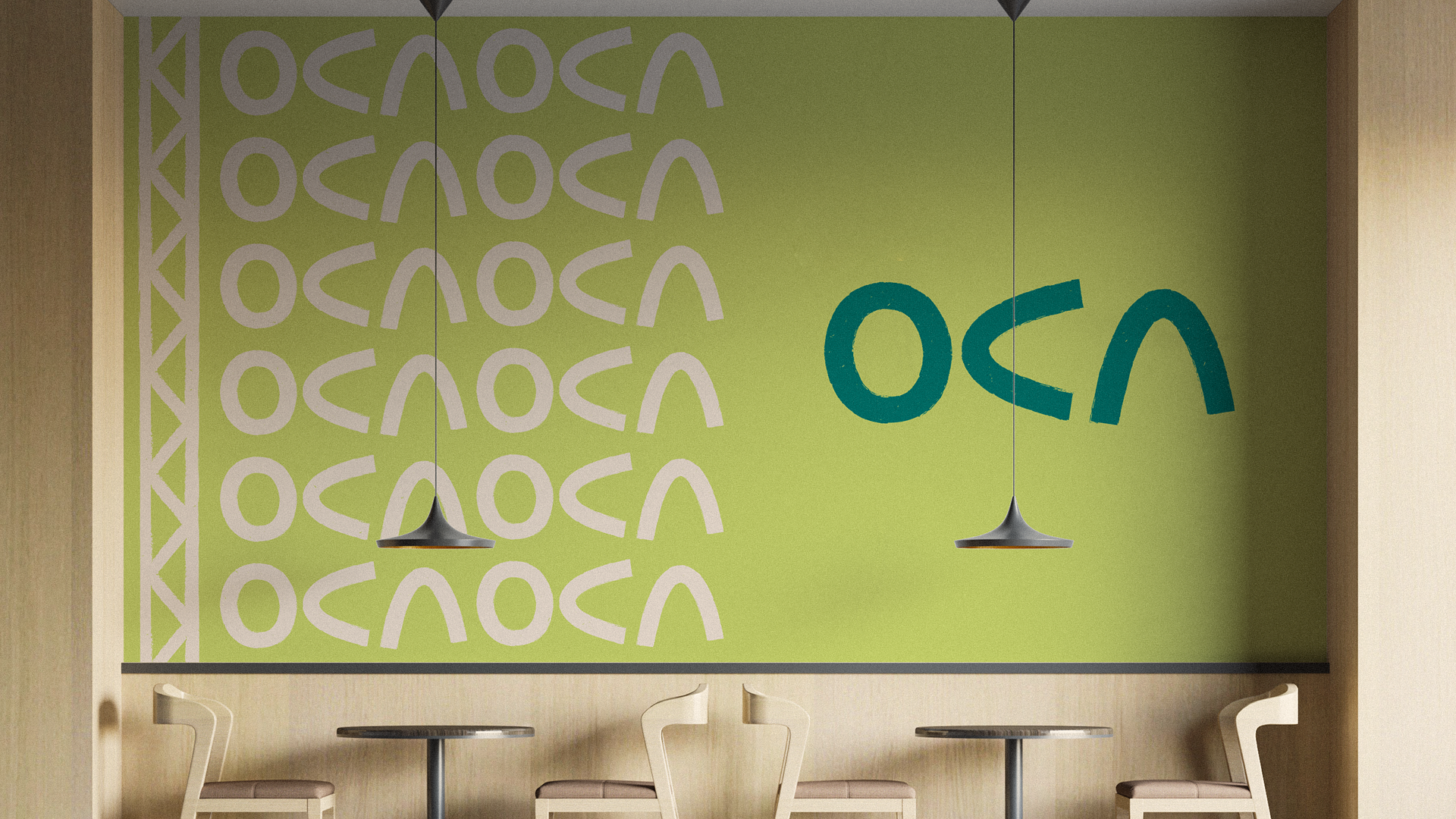 A OCA é o novo bar da mata. Oferece uma noite bastante culltural, com música, culinária particular e especiarias. O objetivo da identidade foi evidenciar a origem indigena do nome. As letras desenhadas a mão, fazem o formato da casa indígena e com ela abre-se um padrão enorme de aplicação em sua identidade.